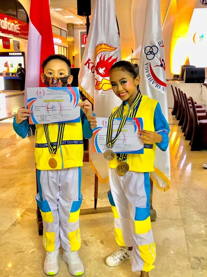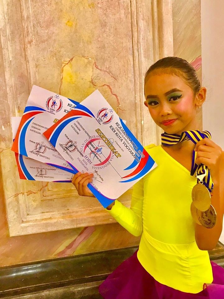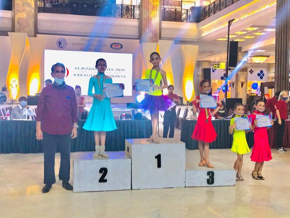 Semua itu diraih dalam perlombaan Kejuaraan Kota 2020, Cabang Olahraga Dancesport IODI Kota Yogyakarta 2020.