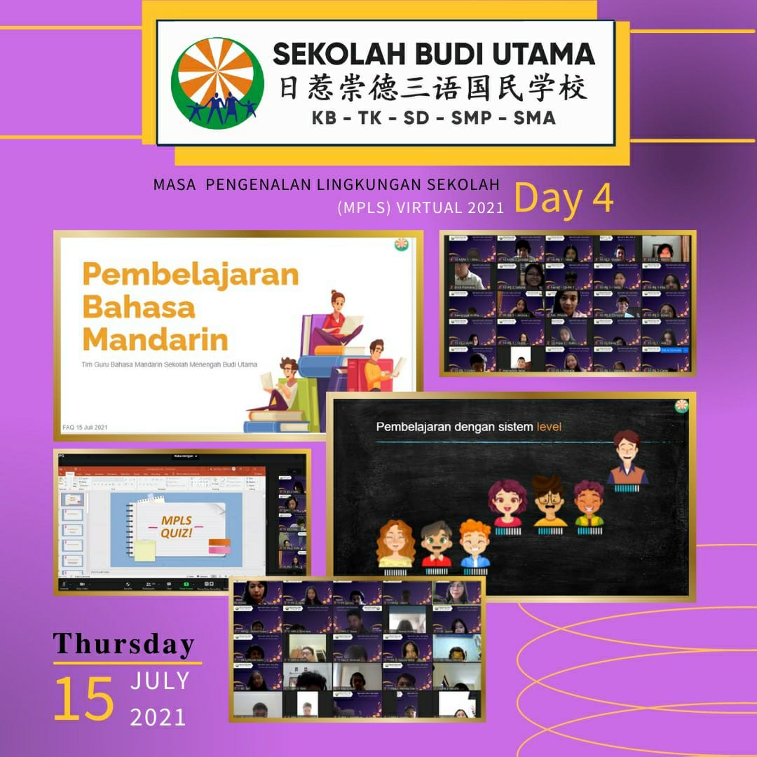 Seluruh kegiatan MPLS yang disusun oleh para guru dan OSIS SMA Budi Utama tahun ini dilaksanakan secara daring. Adanya PPKM darurat yang diterapkan oleh pemerintah karena penyebaran virus COVID - 19 yang terus melonjak, kegiatan MPLS harus dilakukan dari rumah masing-masing siswa. Seluruh kegiatan dilakukan secara virtual dengan menggunakan Zoom Meeting dan group chat di Whatsap.