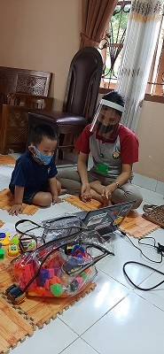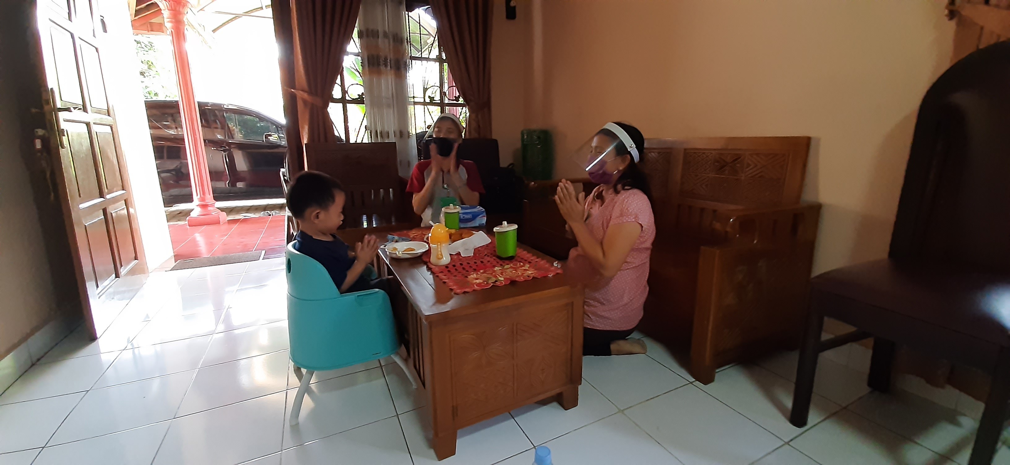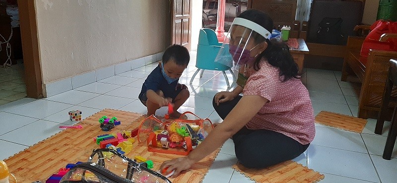 Salah satu kegiatan KB TK Budi Utama yaitu home visit. Guru kelas mengunjungi salah satu peserta didik. Dalam kunjungan tersebut guru tetap mengutamakan standar protokol kesehatan, yaitu menggunakan masker, face shield, dan cuci tangan sebelum masuk dan berkegiatan dengan peserta didik. Tidak lupa menjaga jarak saat berinteraksi bersama peserta didik.
