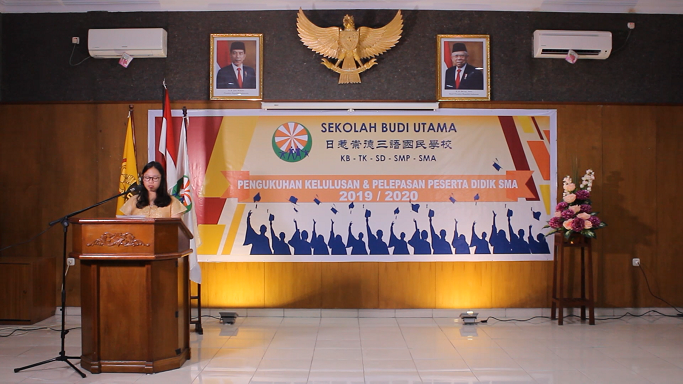 Selasa, 2 Juni 2020, SMA Budi Utama melaksanakan Pengukuhan Kelulusan & Pelepasan Peserta Didik Tahun Pelajaran 2019/2020 secara virtual. Acara pengukuhan kelulusan virtual ini tidak dihadiri oleh seluruh siswa dan orang tua karena mengingat kondisi pandemi Covid-19 belum berakhir. Meskipun demikian, para siswa dan orang tua tetap dapat mengikuti seluruh rangkaian acara melalui siaran di channel youtube Sekolah Budi Utama.