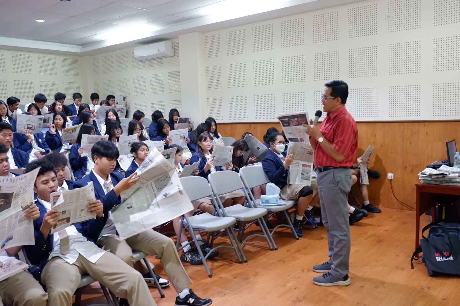 Dalam presentasinya, Bapak St. Kartono menekankan pentingnya membaca sebagai sarana untuk membuka wawasan, menambah pengetahuan, serta mengasah kemampuan membaca dan menulis sebagai hardskill dan softskill yang wajib dimiliki dalam persaingan global saat ini. Kemampuan literasi menurut beliau juga membantu para siswa memfilter informasi sehingga terhindar dari berita hoax. Beliau juga mengajak siswa untuk menjadikan menulis sebagai kebiasaan yang dapat membantu mereka dalam mengekspresikan diri, mengembangkan kreativitas, dan berpikir kritis. Selain itu, beliau juga membagikan berbagai tips praktis untuk meningkatkan kemampuan literasi, seperti memilih bahan bacaan yang sesuai dengan minat, membuat catatan dari buku yang dibaca, dan melatih kemampuan menulis dengan memulai dari setiap kegiatan menarik yang ingin kita informasikan kepada orang lain.
