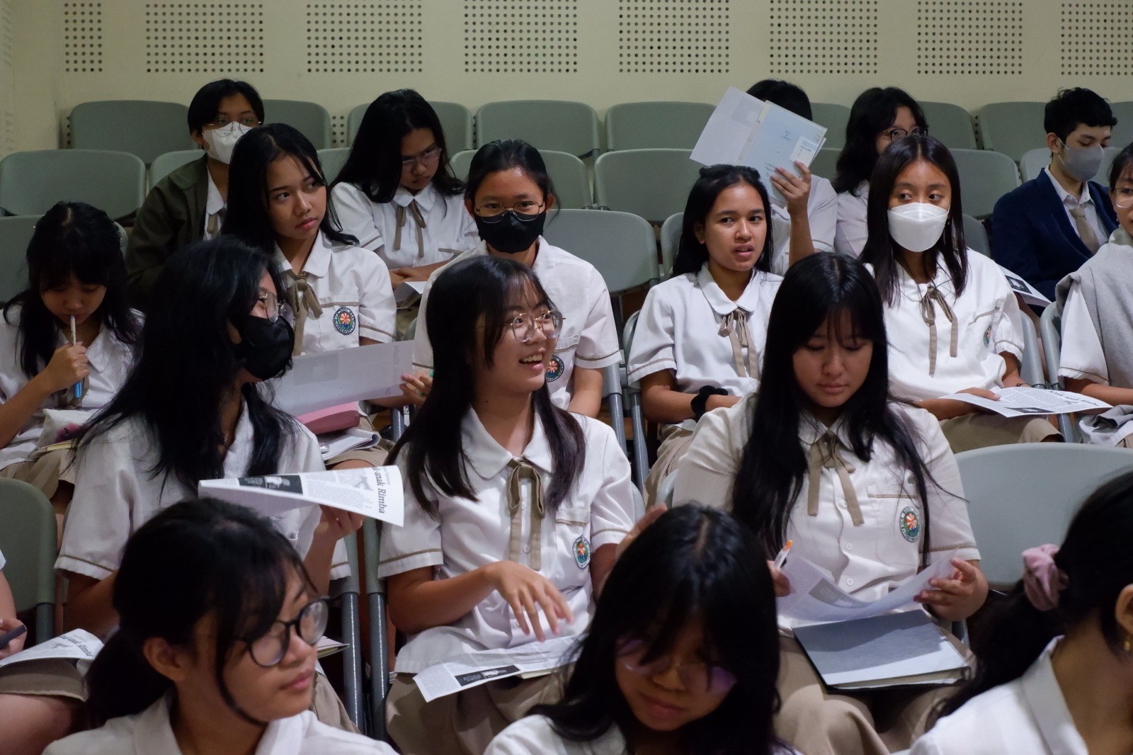 Selain menyampaikan materi, Bapak St. Kartono juga mengajak siswa untuk terlibat aktif dalam menulis. Para siswa diajak melakukan wawancara dengan teman sekelas mereka, kemudian menuliskan isi wawancara tersebut. Bapak St. Kartono juga menyampaikan bahwa kebiasaan membaca dan menulis akan membuka banyak peluang besar termasuk memperoleh beasiswa dan jenjang karier di masa depan seperti pengalaman kedua puteri beliau yang dapat keliling di beberapa negara karena kemampuan mereka menulis dan menghasilkan karya. Selain itu, ada juga diskusi bersama para siswa kelas X dan XI yang berlangsung dengan sangat interaktif, di mana Bapak St Kartono menjawab setiap pertanyaan dengan bijaksana dan memberikan pandangan yang membangun.