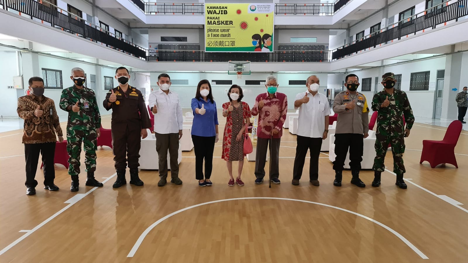 Beberapa siswa dan siswi yang telah di vaksin berfoto bersama dengan Bapak KGPAA Pakualam x (Wagub DIY) dan Bapak Dr. Andry Wibowo, SIK, MH, M. Si (Kabinda DIY).