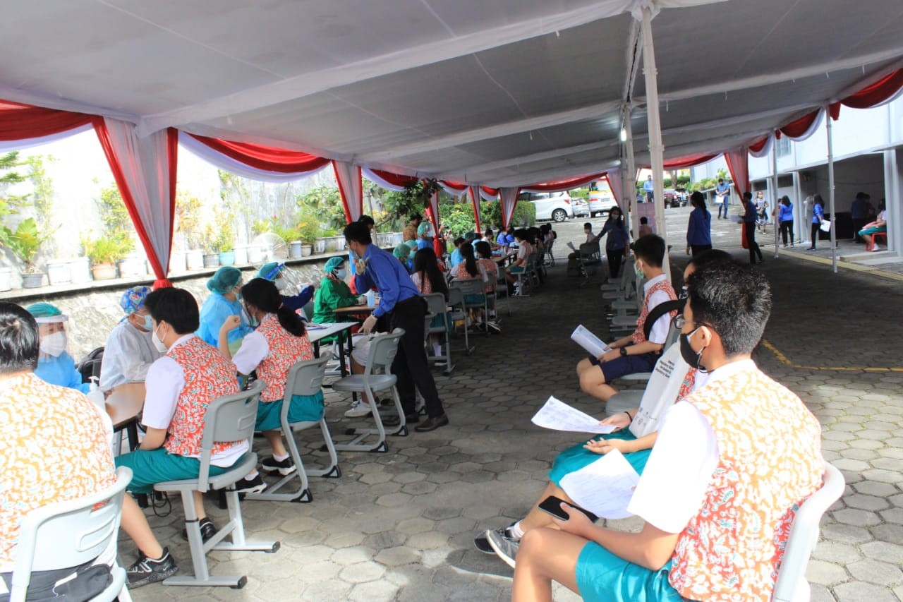 Proses vaksinasi berjalan dengan baik dan lancar dengan mengikuti protokol kesehatan. Lokasi pemberian vaksin terletak di lapangan basket outdoor gedung SMP dan SMA Budi Utama. Semua siswa siswi SMP dan SMA Budi Utama telah mendapatkan vaksin pertama, namun seperti yang disampaikan oleh Bapak Joko Widodo secara virtual, anak-anak dan semua yang sudah mendapatkan vaksin harus tetap menggunakan masker, menjaga jarak, dan rajin mencuci tangan.