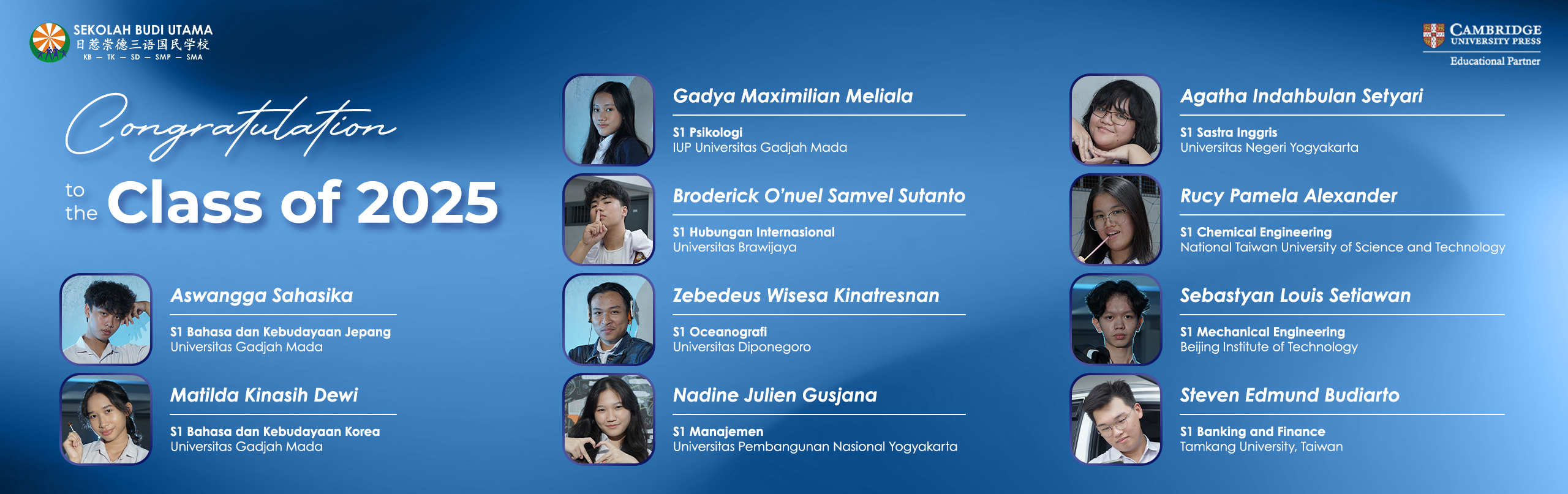 Sekolah Budi Utama menjadi bagian penting dalam proses pendewasaan siswa dan telah menjadi orang tua serta rumah kedua untuk siswa.