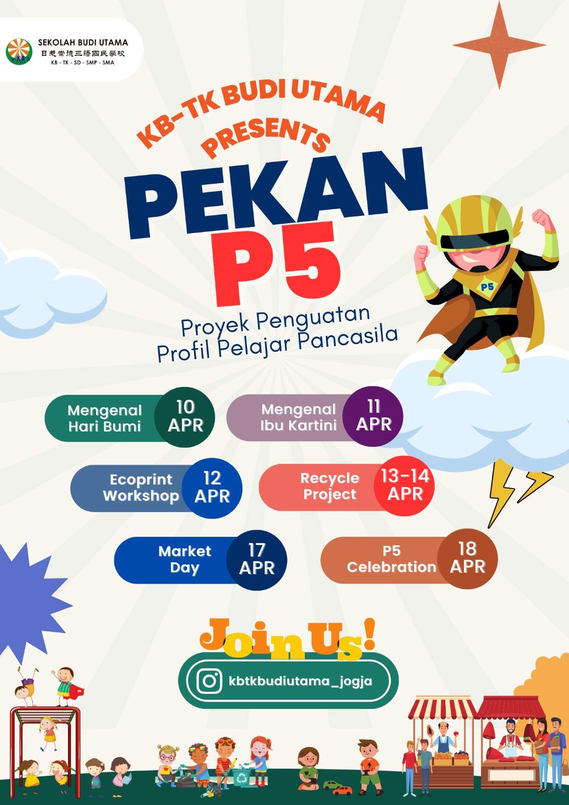 Bakalan ada pengenalan hari bumi, hari kartini, _kids workshop_, _recycle project_, _market day_ dan puncak perayaan P5