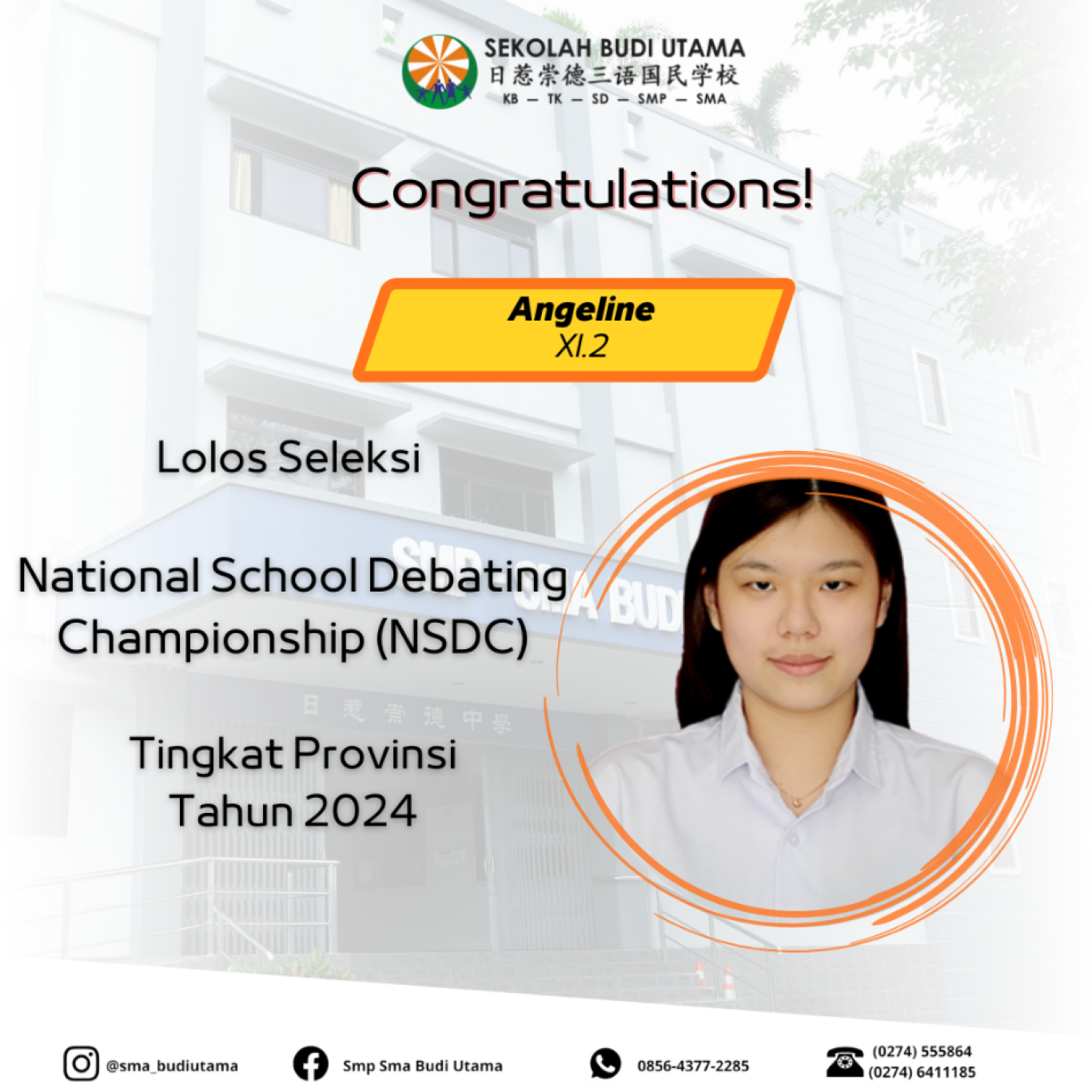 “Angeline of SMA Budi Utama Represents DIY in NSDC...