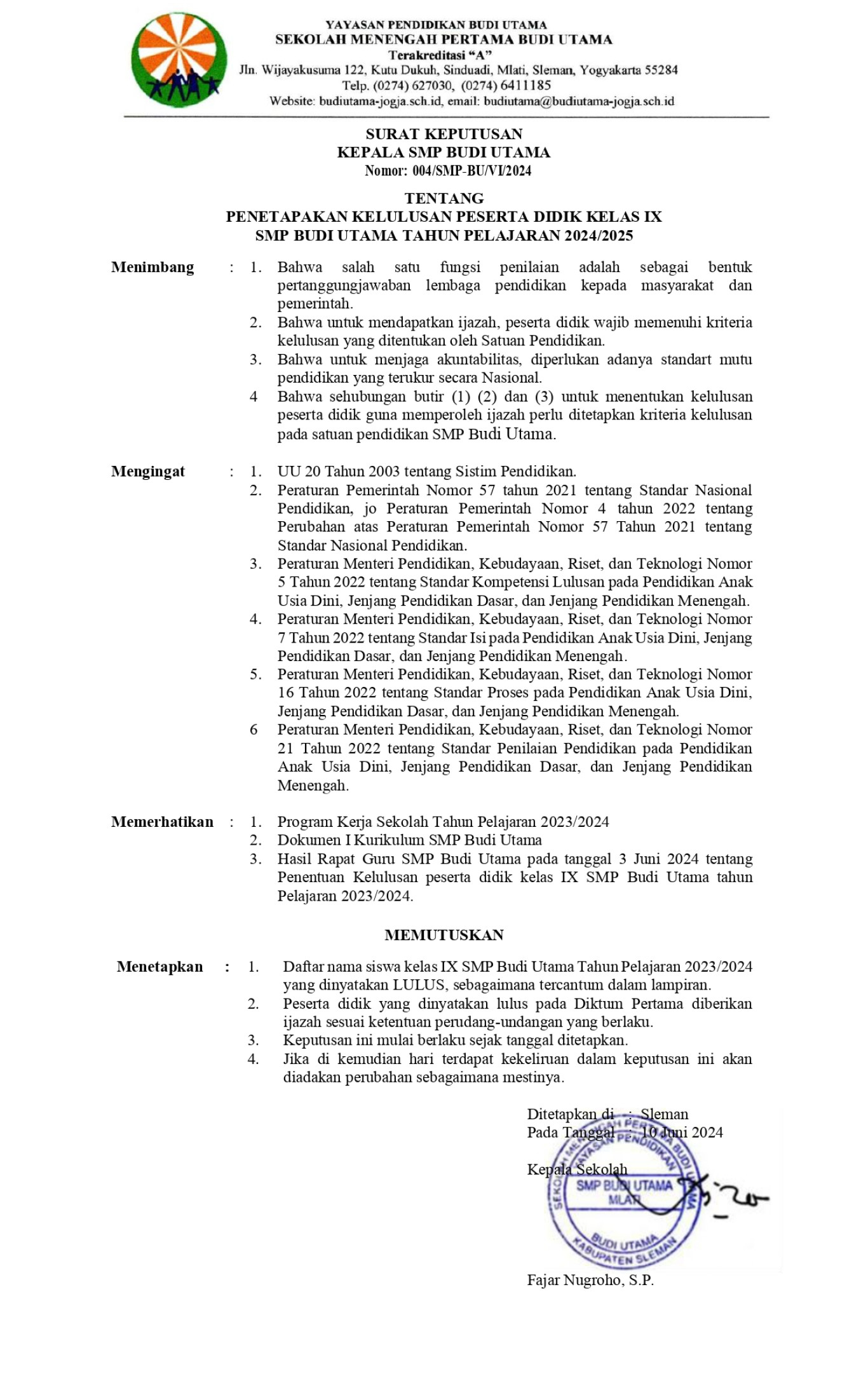 PENGUMUMAN PENETAPAN KELULUSAN PESERTA DIDIK KELAS...