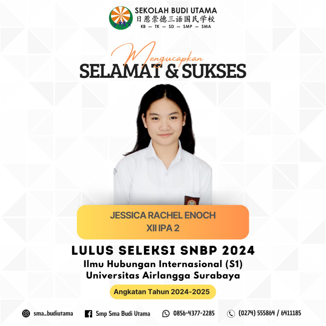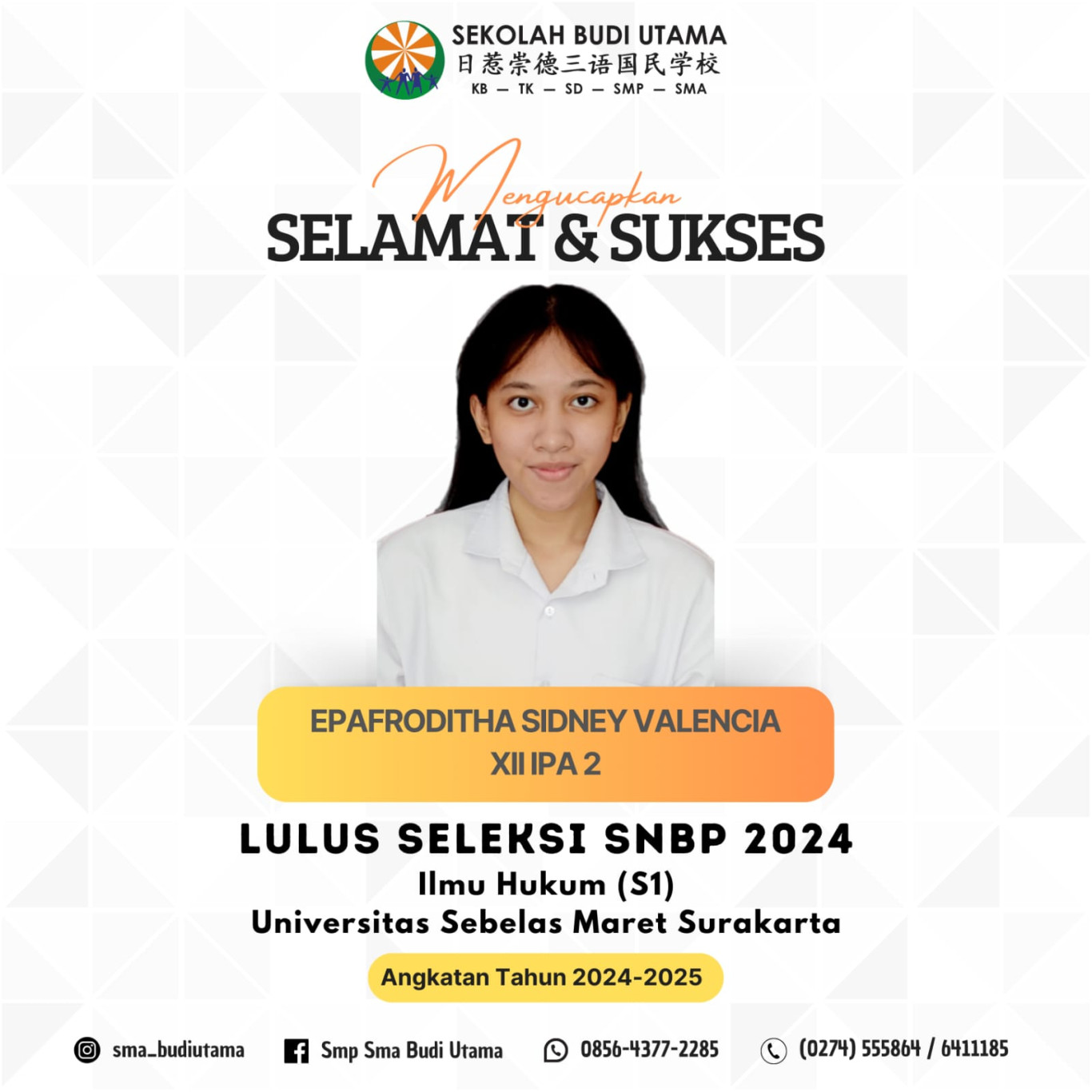 Selamat & Sukses Siswa-Siswi SMA Budi Utama,. Perw...